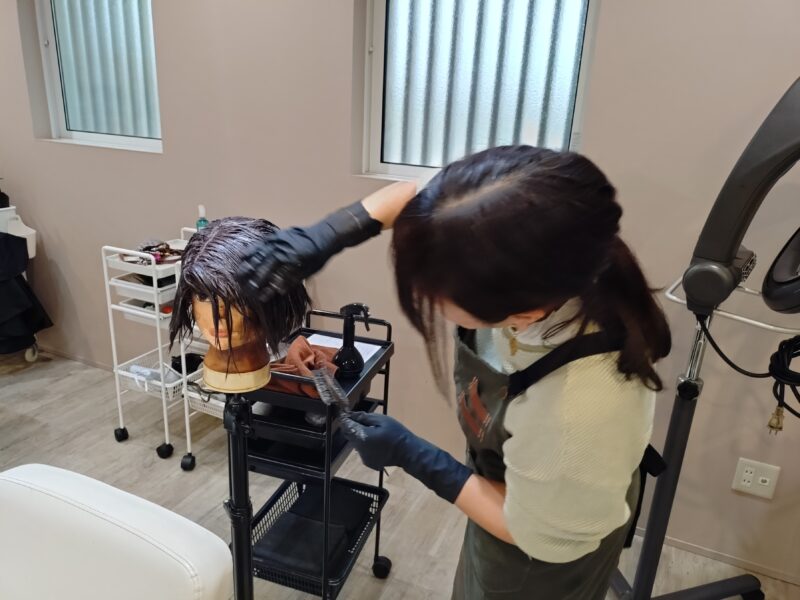 人毛ウィッグのカラーチェンジ